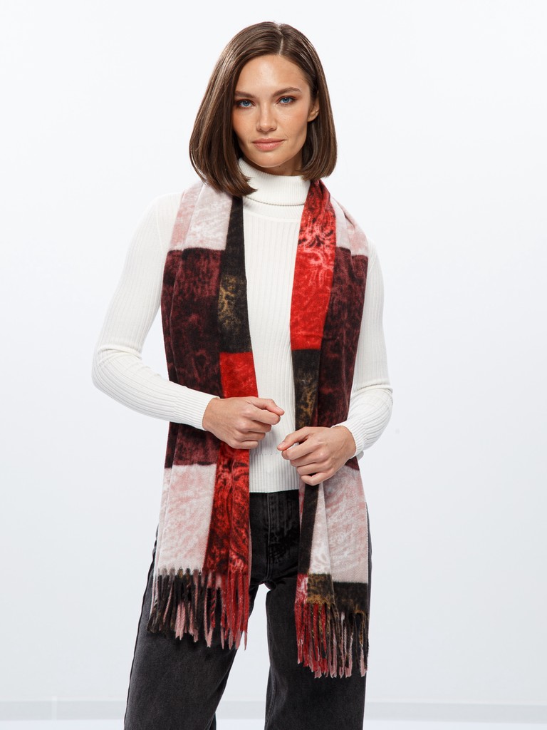 Палантин женский торговой марки Labbra. Состав: 70% хлопок, 30% шерсть. Тип подгибки: машинная подгибка, кисти. Размер: 71х182см.