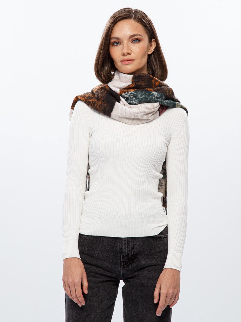 Палантин женский торговой марки Labbra. Состав: 70% хлопок, 30% шерсть. Тип подгибки: машинная подгибка, кисти. Размер: 71х182см.