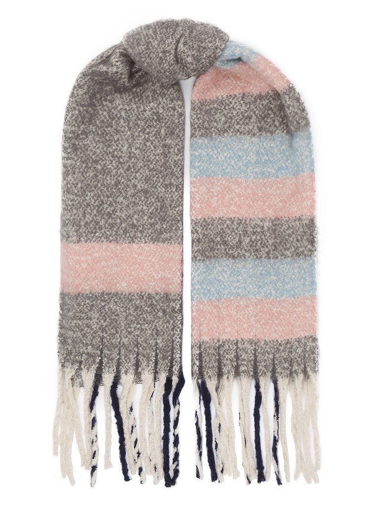 Палантин женский торговой марки Labbra. Состав: 55% шерсть, 45% акрил. Тип подгибки: фабричная закрепка, кисти. Размер: 50х190см.
