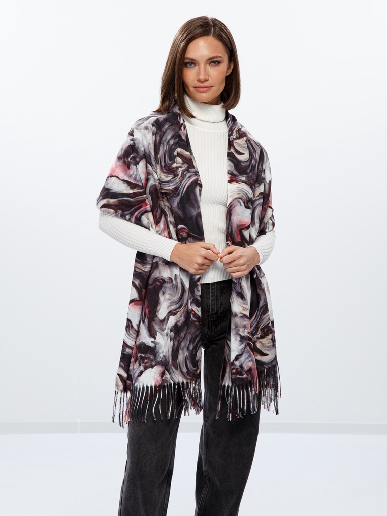 Палантин женский торговой марки Labbra. Состав: 40% шерсть, 60% вискоза. Тип подгибки: машинная подгибка, кисти. Размер: 72х180см.