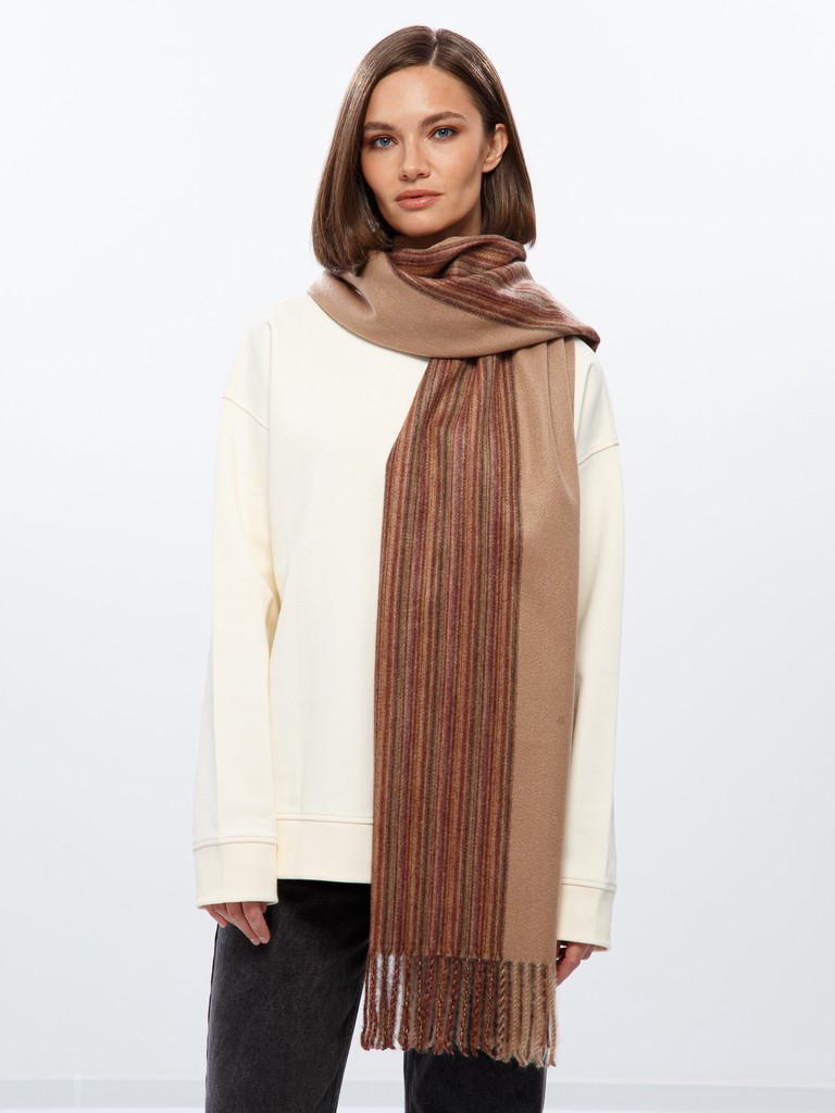 Палантин женский торговой марки Labbra. Состав: 50% шерсть, 20% хлопок, 30% акрил. Тип подгибки: фабричная закрепка, кисти. Размер: 65х180см.