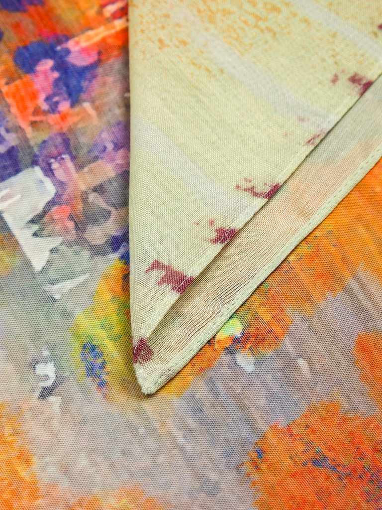 Палантин женский торговой марки ELEGANZZA. Состав: 70% шелк, 30% хлопок, полотняное. Тип подгибки: машинная подгибка. Размер: 70х180см.