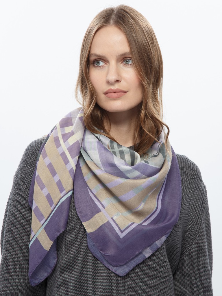 Платок женский торговой марки ELEGANZZA. Состав: 50% шелк, 30% шерсть, 20% модал. Тип подгибки: машинная подгибка. Размер: 120х120см.