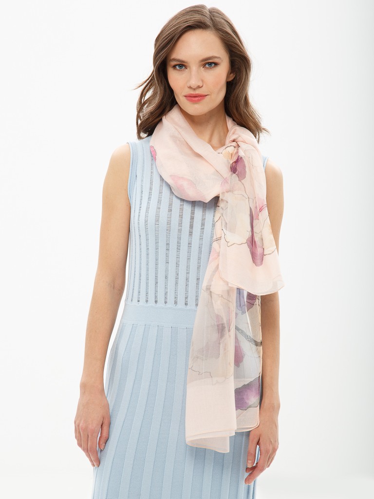 Палантин  женский торговой марки ELEGANZZA. Состав: 80% шелк, 20% хлопок. Тип подгибки: машинная подгибка, реснички. Размер: 85х195см.