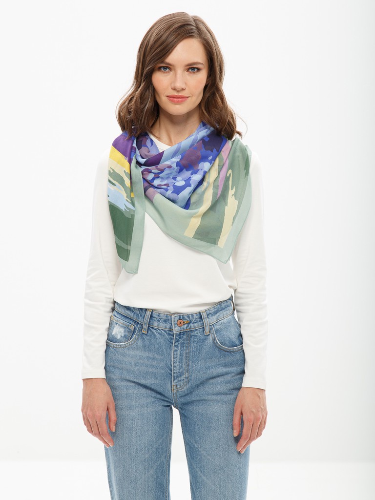 Платок женский торговой марки ELEGANZZA. Состав: 30% шелк, 70% модал, твил. Тип подгибки: машинная подгибка. Размер: 110х110см.