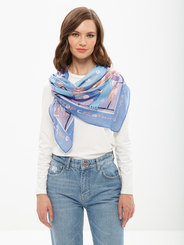 Платок женский торговой марки ELEGANZZA. Состав: 30% шелк, 70% модал. Тип подгибки: машинная подгибка. Размер: 120х120см.