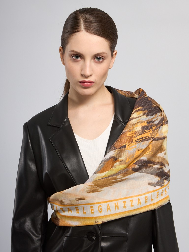 Палантин  женский торговой марки ELEGANZZA. Состав: 70% шерсть, 20% шелк, 10% люрекс. Тип подгибки: фабричная закрепка, реснички. Размер: 70х180см.