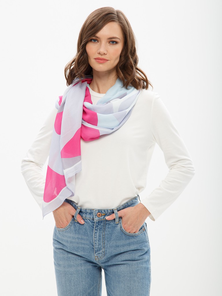 Палантин  женский торговой марки ELEGANZZA. Состав: 30% шелк, 70% модал, твил. Тип подгибки: машинная подгибка. Размер: 110х180см.