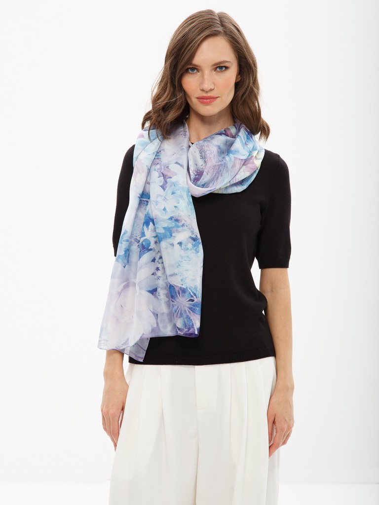 Палантин  женский торговой марки ELEGANZZA. Состав: 100% шелк, шифон твил, повышенной плотности (7mm). Тип подгибки: машинная подгибка. Размер: 65х180см.