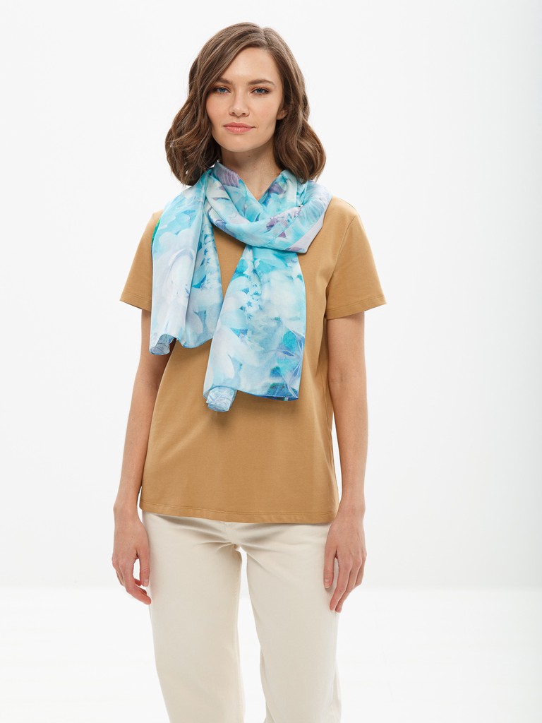 Палантин  женский торговой марки ELEGANZZA. Состав: 100% шелк, шифон твил, повышенной плотности (7mm). Тип подгибки: машинная подгибка. Размер: 65х180см.