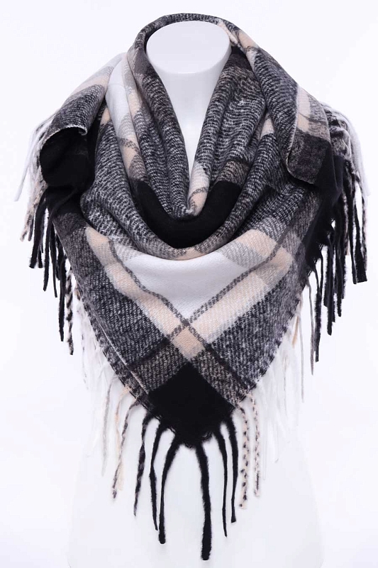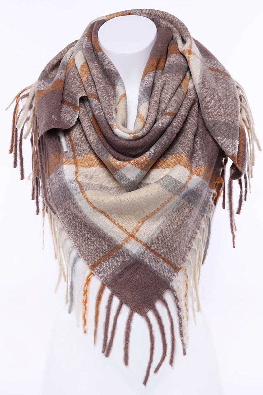 Теплый, мягкий платок. На двух противоположных краях платка кисти, два других заканчиваются кромкой.