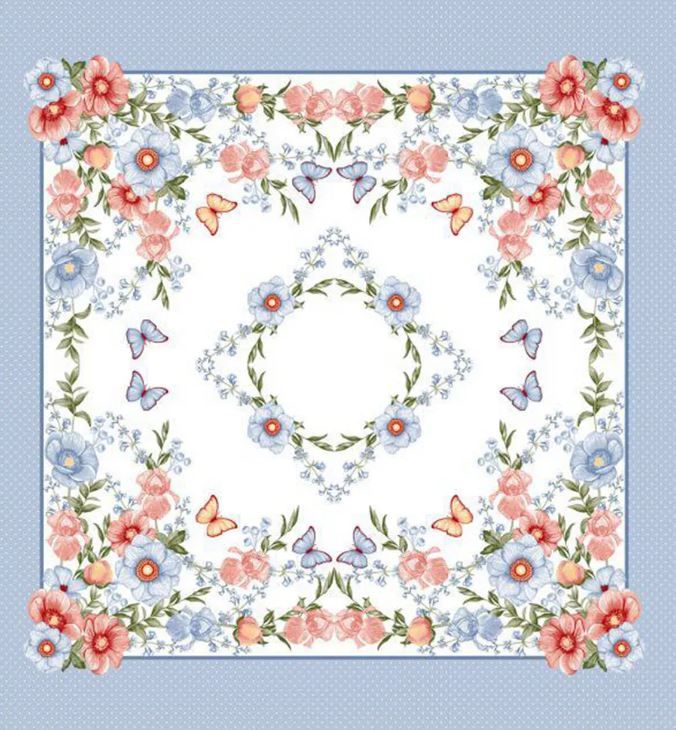 Платок головной женский Цветы и бабочки (голубой)