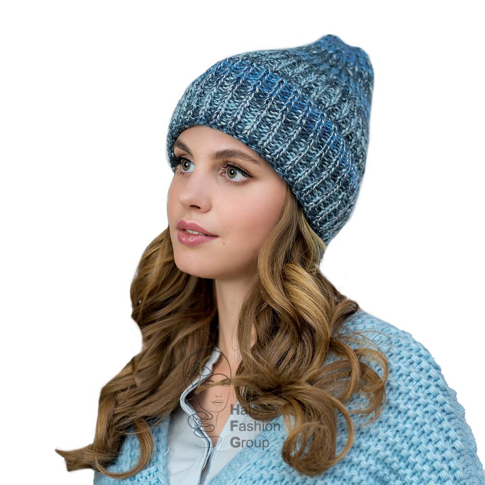 Женская шапка с отворотом и флисовой подкладкой. Шапка выполнена из шерстяной пряжи с добавлением люрексовой нити.