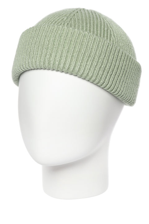 Шапка-бини короткая (по голове), одинарная, с маленьким двойным отворотом.