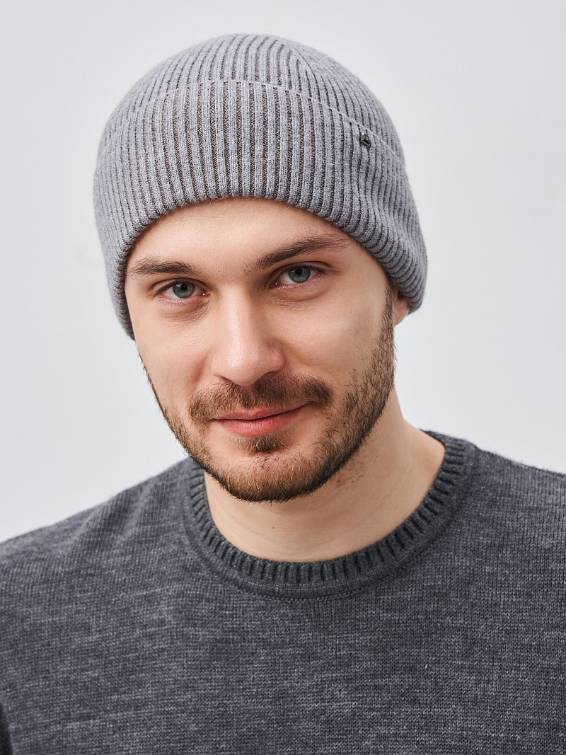 Шапка мужская одинарная с отворотом и металлическим декором.