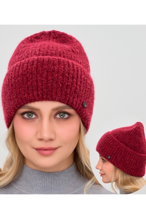 Шапка женская с отворотом одинарная, выполнена из мягкой пряжи "Angora" с добавлением нити люрекса и пряжи "травка". Вязка плотная, эластичная.