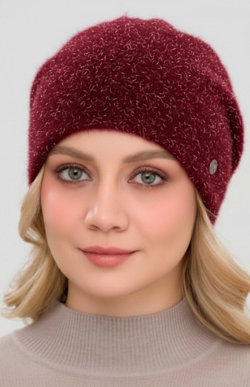 Женский колпак двойной выполнен из мягкой пряжи  "Angora"с добавлением нити люрекса и пряжи "травка". Вязка плотная, эластичная.
