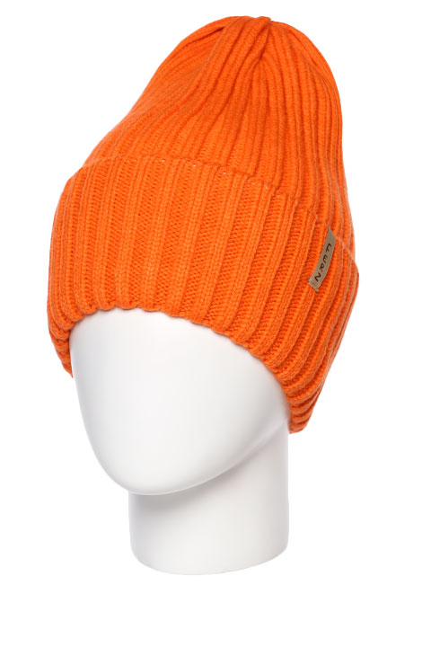 Высокая одинарная шапка с отворотом, длина модели 25 см. Вязка плотная и эластичная.