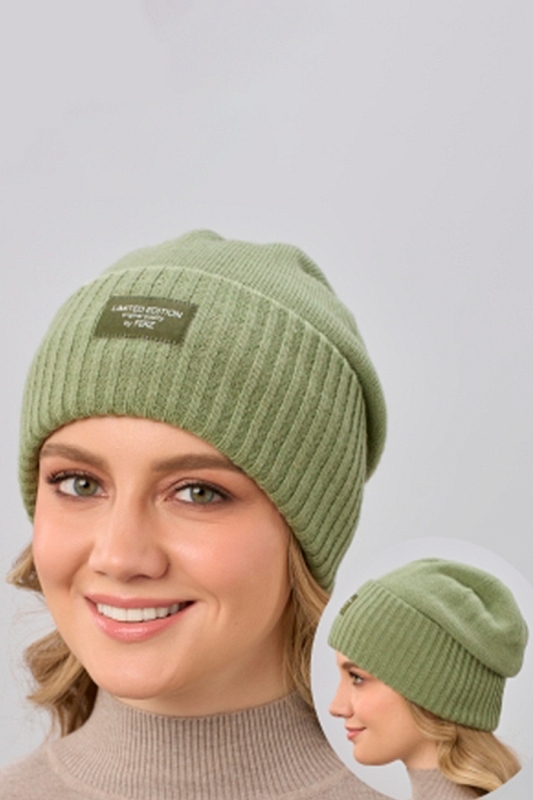 Шапка двойная с отворотом, длина модели 24 см. Вязка гладкая, плотная.