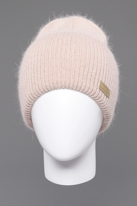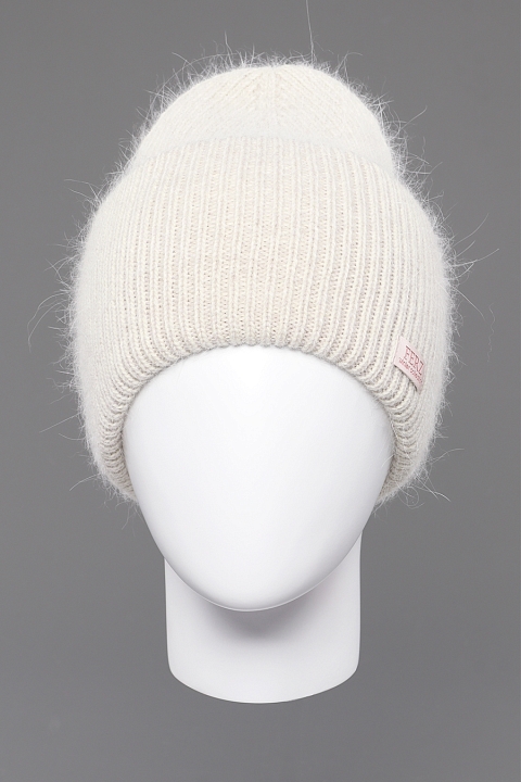 Шапка женская однослойная с широким двойным отворотом (шириной 13 см), выполнена из пряжи "Angora". Вязка плотная, эластичная.