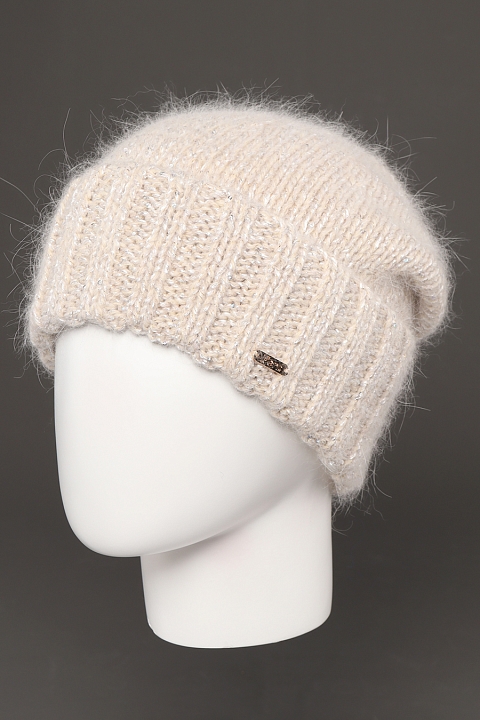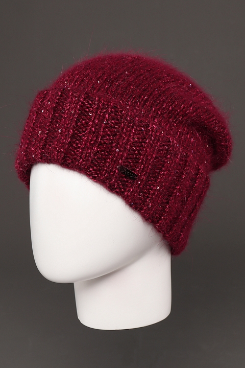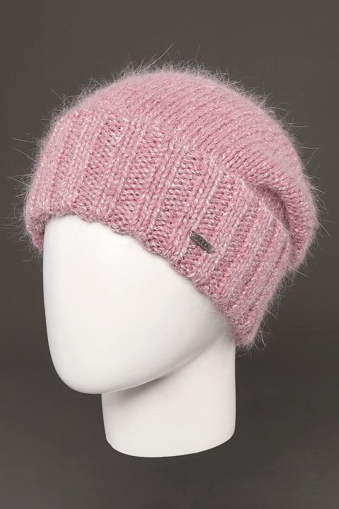 Шапка одинарная с отворотом выполнена из пряжи "Angora" с добавлением нити метанита и пайетками.