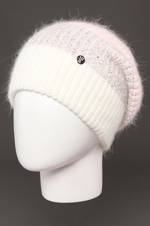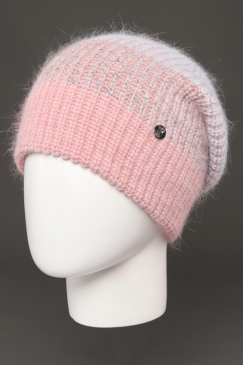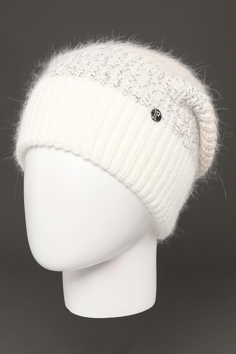 Шапка двойная, длина модели 25 см. Выполнена из пряжи "Angora" с добавлением нити люрекса и пайеток.