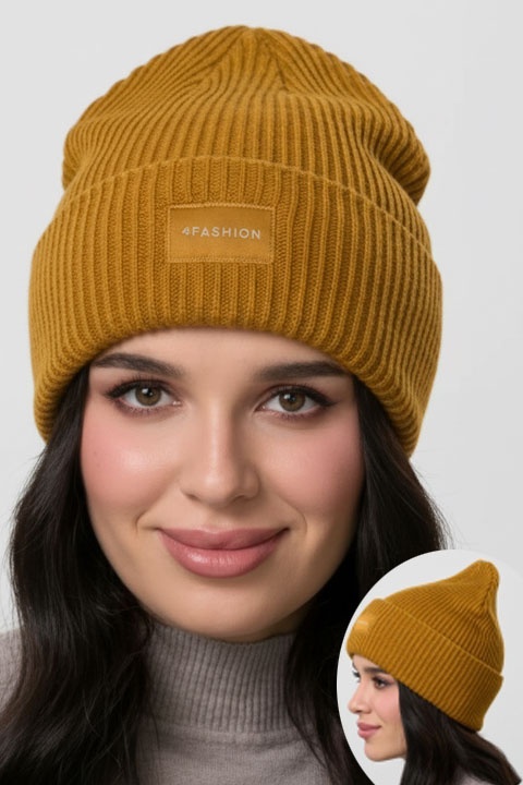 Шапка двойная с отворотом, по центру отворота - шеврон.