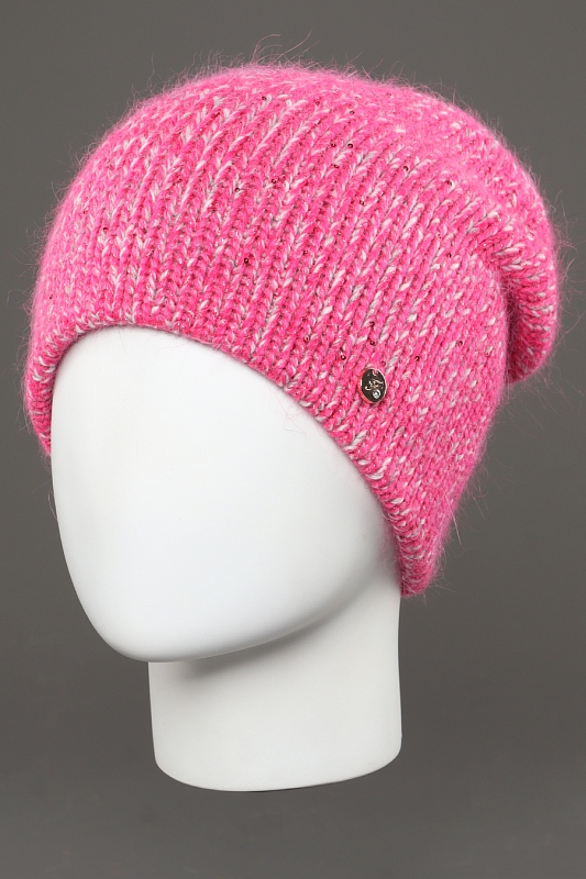 Шапка двойная, длина модели 25 см. Выполнена из мягкой пряжи "Angora" с добавлением нити люрекса и пайетками.