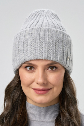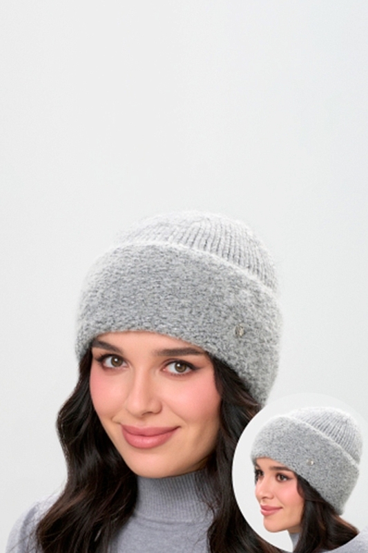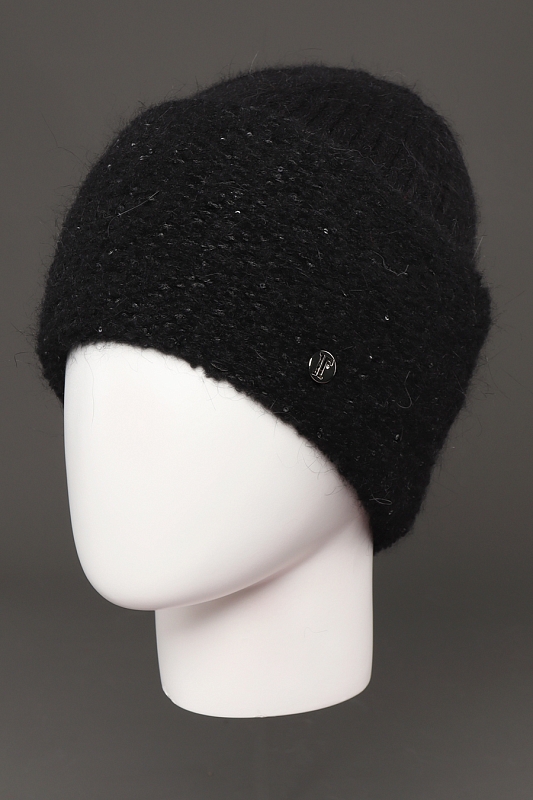 Шапка одинарная с широким отворотом 12 см. Отворот выполнен из пряжи "букле" с нитями метанита и пайетками.