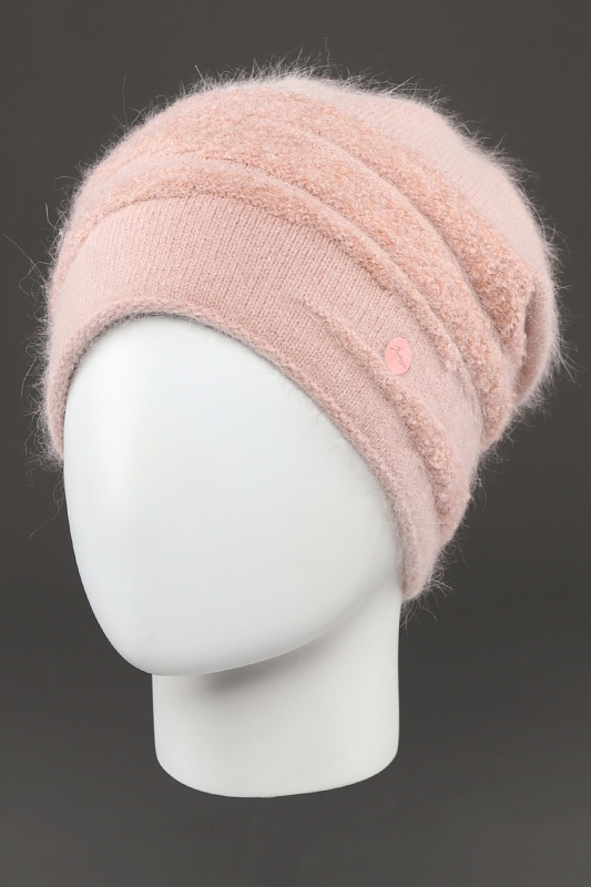 Шапка с подворотом внутрь на 1/3, длина модели 25 см. Выполнена из пушистой, мягкой пряжи "Angora". Вязка плотная и эластичная.