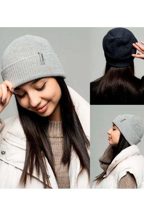 Шапка двойная. Шапку можно носить в двух вариантах: как удлиненную модель, длина модели 28 см (заложив складку сзади) или с отворотом. Вязка плотная и эластичная. Цвет нашивки может отличаться от представленных на фото.