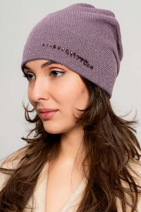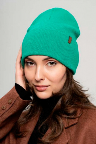 Шапка однослойная с подворотом внутрь на 2/3, сзади модель оформлена драпировкой и закреплена строчкой.