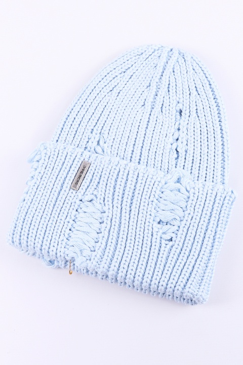 Шапка с декоративными дырочками, одинарная с отворотом.