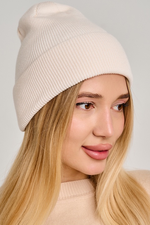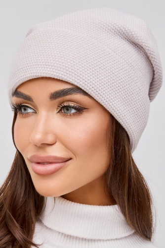 Шапка двойная с отворотом, тонкая. Вязка гладкая, плотная и эластичная имеет мягкую текстуру.