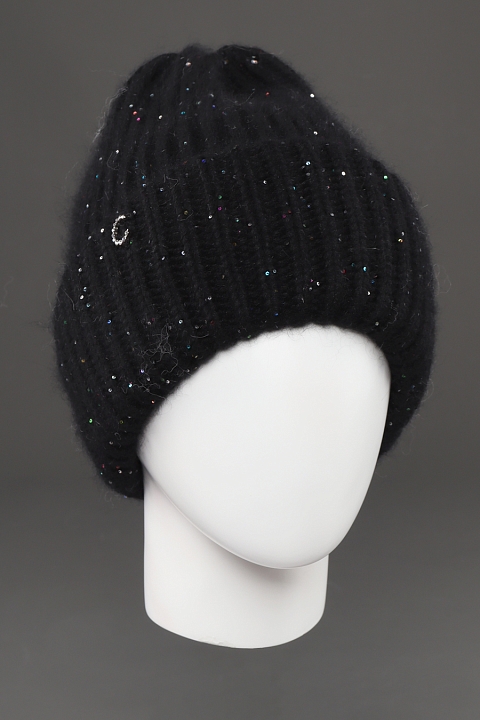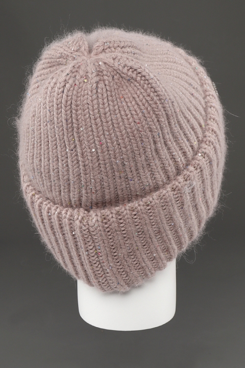 Шапка с двойным отворотом на флисовом подкладе. Выполнена из мягкой, пушистой пряжи с пайетками.