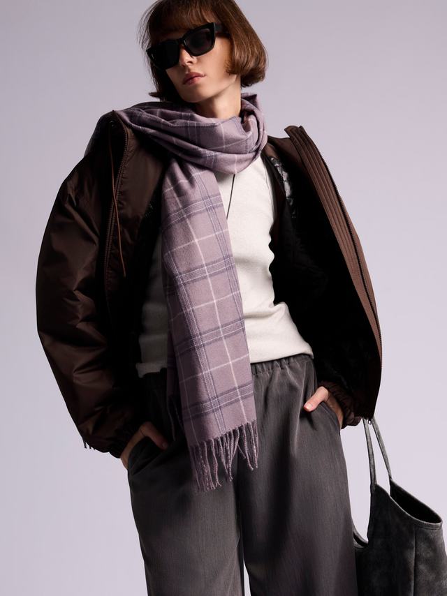 Шарф: Н181 Сиреневый клетка-1