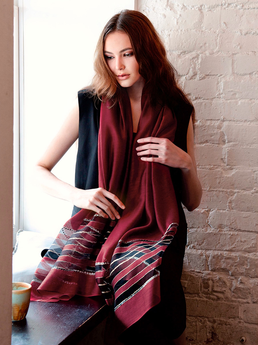 Только стиль, только новое, только для тебя! Сверхновая звезда — элегантный вечерний палантин из натуральных шелка и шерсти. Невероятные безальтернативные цвета, полоски, люрекс, контрастная прострочка — ничего лишнего. Аксессуар на каждый день — навсегда, только для тебя!