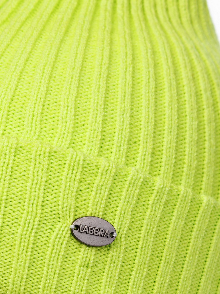 Женская модель шапки бини с отворотом выполнена из смесовой пряжи с добавлением кашемира. Очень мягкая, но при этом теплая шапка. Аксессуар выполнен как в модных цветах, так и в базовых.  Лицевую часть шапки украшает фирменная фурнитура с логотипом Labbra.
