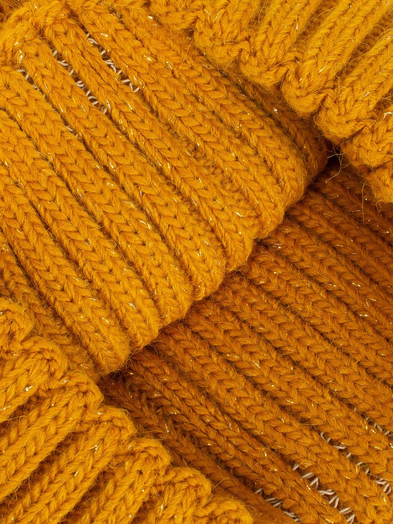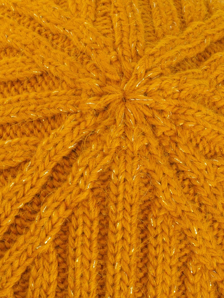 Ультрамодная шапка бини с увеличенным верхом и широким отворотом выполнена из смесовой полушерстяной пряжи. Использована вязка широкой резинки с добавлением люрексной нити в тон. Модель выполнена в модных цветах сезона. Шапка станет идеальным дополнением как образа в стиле casual, так и ярким аксессуаром для классического.