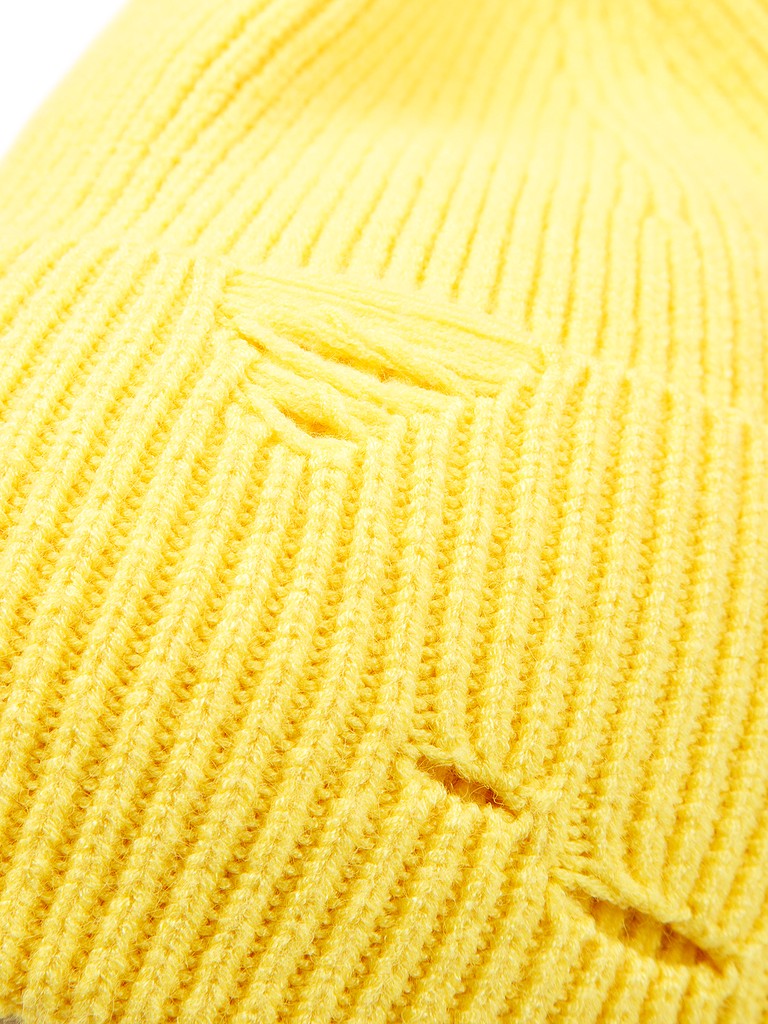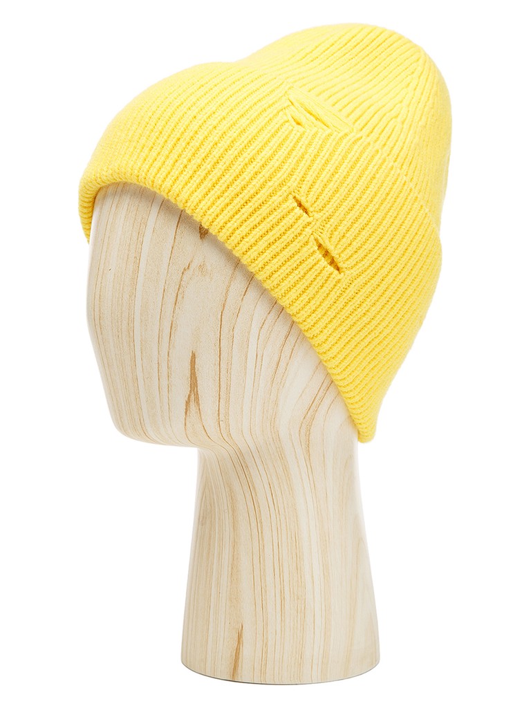 Шапка бини с отворотом, украшенным ультрамодным дизайном в виде дырочек из распущенной пряжи,  выполнена из высококачественной  пряжи с кашемиром в составе. Аксессуар выполнен как в модных цветах, так и в базовых и станет актуальным дополнением к современному гардеробу.