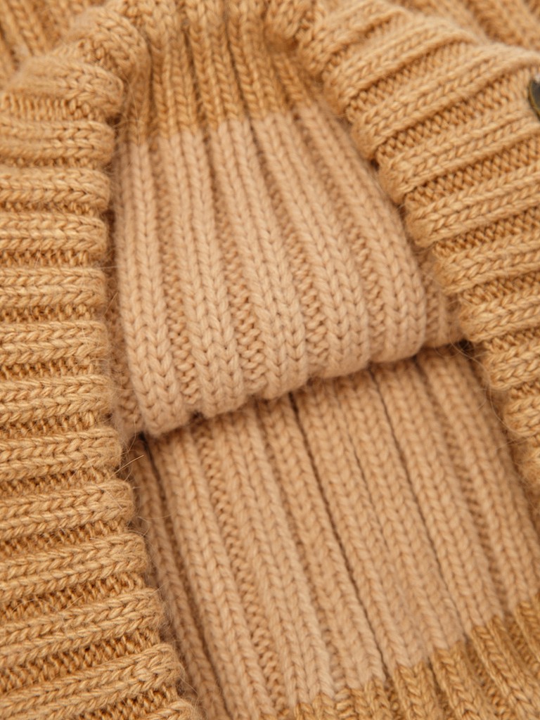 Классическая форма шапки-бини выполнена из смесовой пряжи с ангорой в составе. В модели используется вертикальное плетение классической резинкой, что обеспечивает мягкую драпировку.  Шапка легкая и теплая благодаря полушерстяному подвязу. В такой шапке будет тепло даже в стойкие морозы, а цвет, особенно актуальный в этом сезоне, сделает Ваш образ стильным и современным.