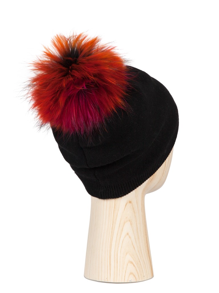 Классическая форма шапки-бини, выполнена из тонкой, но теплой пряжи с добавлением кашемира. Съёмный помпон ярких цветов из натурального меха енота идеально завершает красивое изделие! А дополнительный подвяз позволит сохранять тепло даже в самые стойкие морозы.