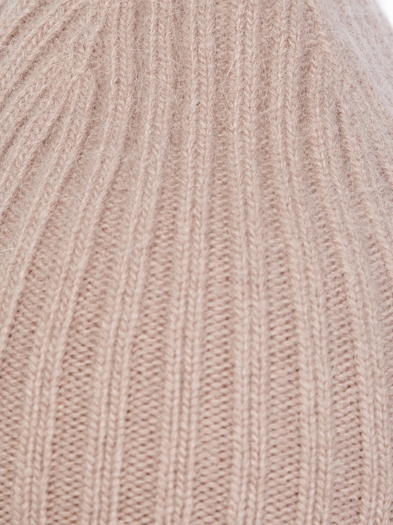 Классическая форма шапки-бини выполнена из смесовой итальянской пряжи с ангорой в составе. В модели используется вертикальное плетение классической резинкой, что обеспечивает мягкую драпировку.  Шапка легкая и теплая благодаря полушерстяному подвязу. В такой шапке будет тепло даже в стойкие морозы, а цвет, особенно актуальный в этом сезоне, сделает Ваш образ стильным и современным.