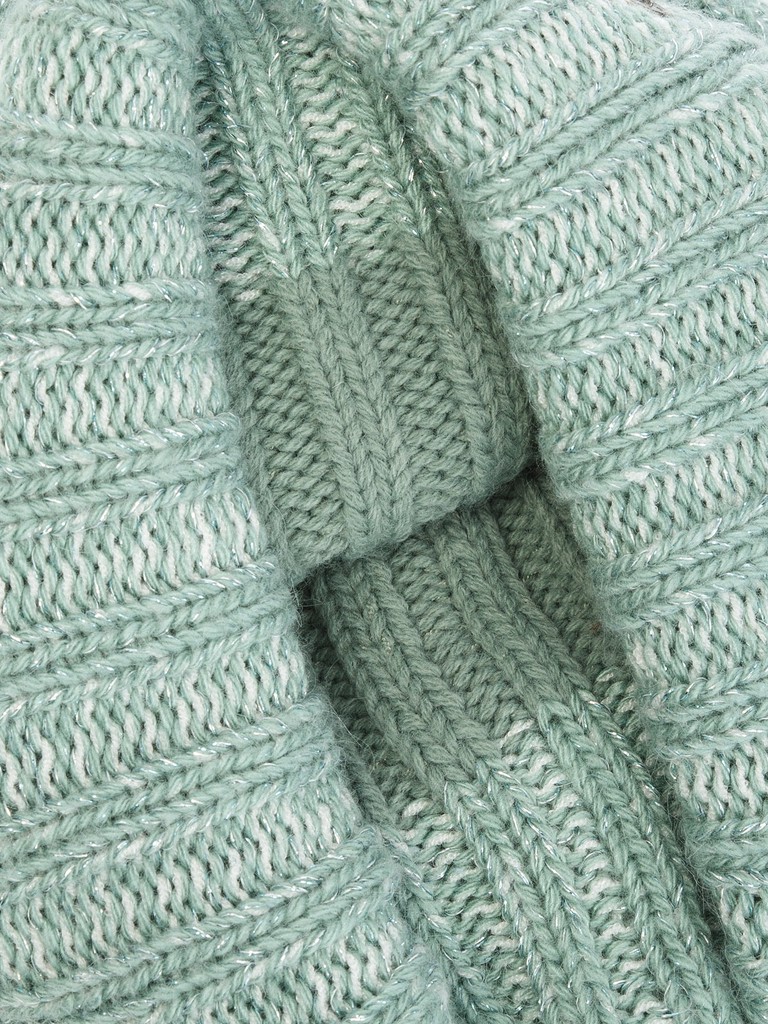 Шапка с широким  отворотом выполнена из смесовой пряжи с высоким содержанием в ней ангоры. Ультра модная конструкция шапки с увеличенным объемом сверху выполнена из пряжи актуальных меланжевых оттенков с вплетенной в нее нитью люрекса, что делает модель особенно актуальной и эффектной.