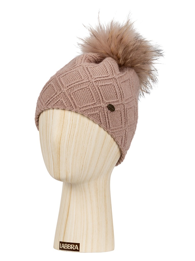 Ст.цена 2060р Шапка жен. шерсть+анг+виск+каш+люр LB-D77016 dirty pink/gold