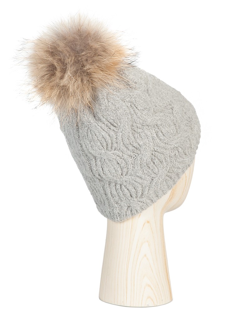 Классическая модель шапки-бини, выполненная из итальянской пряжи с добавлением бэби альпаки. Ажурная, кружевная вязка делает простую форму шапки изысканной. А съемный помпон из натурального меха енота становится приятным акцентом. Модель выполнена на теплой, плотной подкладке, что позволит Вам быть в тепле даже в самые сильные морозы!