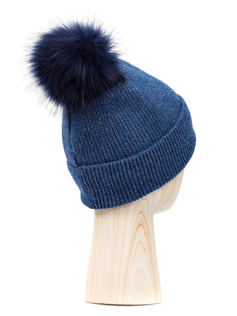 Ст.цена 970р Шапка жен. шерсть+нейл+акр+люр LB-D77103 denim blue