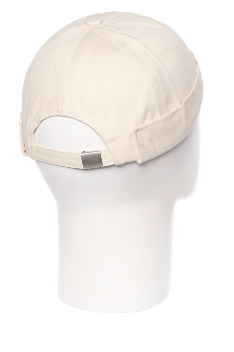 Бейсболка без козырька, с маленьким двойным отворотом, выполнена из плотного, мягкого хлопка. Размер регулируется металлической застежкой.