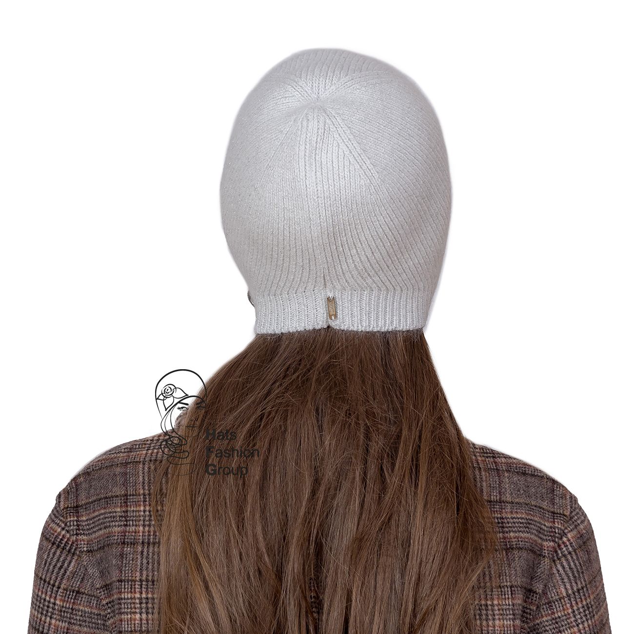 Уютный женский чепчик на пуговице. Чепец однослойный, связан из ангоросодержащей пряжи с добавлением люрексовой нити. Чепец застегивается на пуговицу. Сзади чепец украшен фирменной металлической шильдой. Чепец украсит Ваш образ и придаст нежности.
