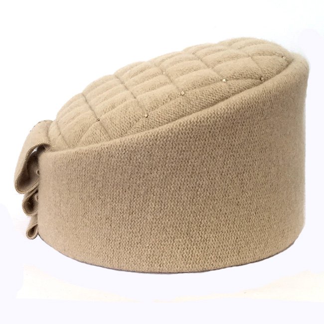 Экстравагантная ассиметричная женская шапка-кубанка. Макушка шапки украшена прострочкой в виде ромбов и стразами. Сбоку оформлена лаконичной композицией из основного полотна со стразами.